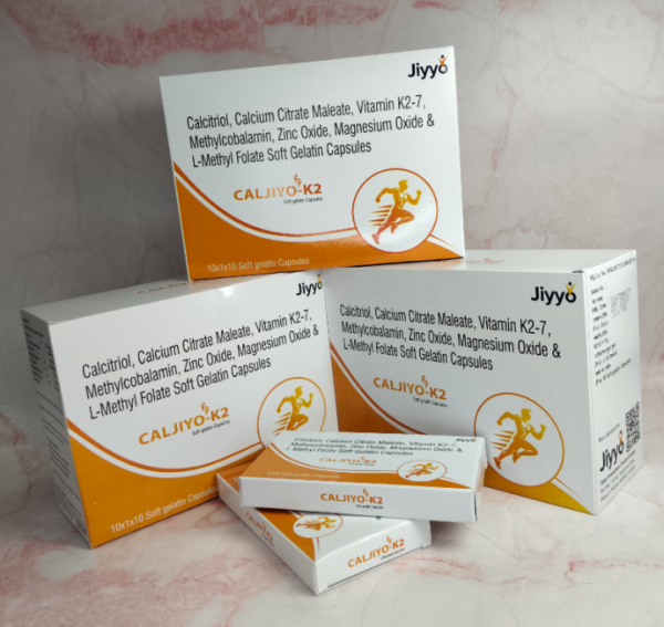 CALJIYO-K2 Softgel Capsule is a vitamin and mineral supplement used to treat nutritional deficiencies and support growth and immunity. Take it orally as prescribed, with or without food, preferably at a fixed time. Do not exceed the recommended dose. It is generally safe, but consult a doctor if you experience severe diarrhea, vomiting, or constipation. Inform your doctor about any health conditions, other medicines, pregnancy, or breastfeeding. Avoid alcohol while taking this medicine. CALJIYO-K2 is a high-quality, doctor-recommended solution for vitamin deficiency. Part of the Jiyyo healthcare range, this medication is trusted by our network of specialist physicians for its purity and effectiveness.| Calcium Citrate Maleate | 500 mg |
