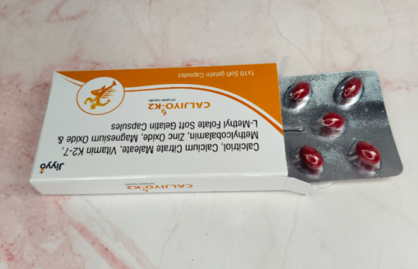 CALJIYO-K2 Softgel Capsule is a combination of vitamins and mineral supplements prescribed to treat vitamin and other nutritional deficiencies. It ensures the proper growth and functioning of the body and strengthens immunity. CALJIYO-K2 Capsule is taken orally with or without food. It should be used in the dose and duration prescribed by your doctor. It is advised to take this medicine at a fixed time to avoid missing a dose. This medicine should not be taken more than the recommended dose. It is usually a safe medicine with very minimal or no side effects. However, if you experience severe diarrhea, vomiting, or constipation, you should consult your doctor without delay. Before taking this medicine, tell your doctor if you have any other health conditions. Inform your doctor if you are taking any other medicines or if you are pregnant or breastfeeding. It is advised not to take alcohol after taking this medicine. At Jiyyo, we bridge the gap between quality and affordability. CALJIYO-K2 is manufactured in state-of-the-art facilities following strict global safety standards. Because of our commitment to excellence, Jiyyo's own network of doctors frequently prescribes this medicine, ensuring patients receive reliable treatment they can trust.Uses