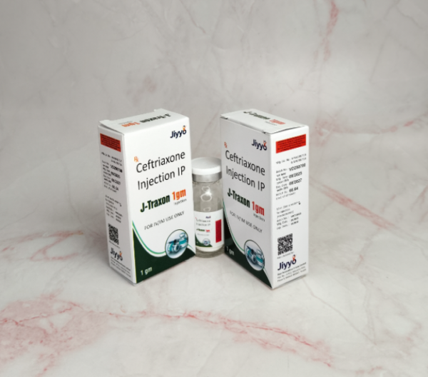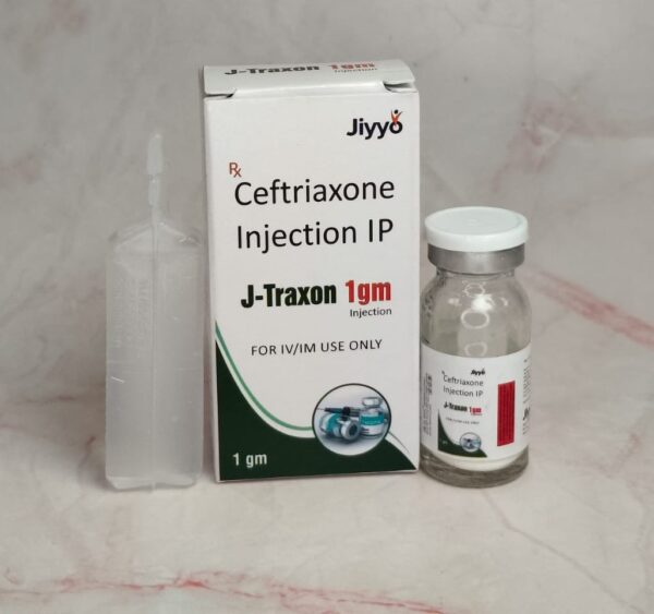 J-Traxon Injection is an antibiotic used to treat serious bacterial infections affecting the brain, lungs, urinary tract, skin, bones, blood, and heart, and it can also help prevent infections during surgery. It is given by injection or IV under a doctor’s supervision, and the full prescribed course should be completed. Common side effects include diarrhea, rash, changes in liver tests, blood cell count changes, and mild pain or redness at the injection site. Inform your doctor about any allergies, kidney or liver problems, or other medicines you are taking. J-Traxon Injection is a high-quality, doctor-recommended solution for bacterial infections. Part of the Jiyyo healthcare range, this medication is trusted by our network of specialist physicians for its purity and effectiveness.| Ceftriaxone Sodium | 1000 mg |