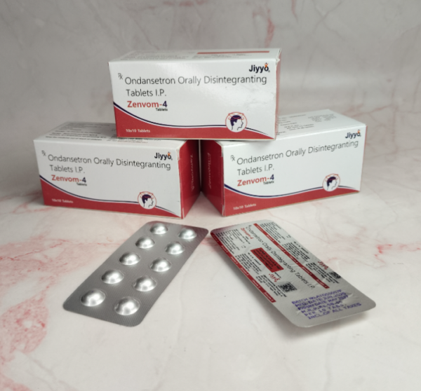 Zenvom-4 Tablet is a medicine used to control nausea and vomiting due to certain medical conditions like stomach upset. It is also used to prevent nausea and vomiting caused due to surgery, cancer drug therapy, or radiotherapy. Zenvom-4 Tablet may be used alone or with other medications and can be taken with or without food. Your doctor will suggest the appropriate dose depending on what you are taking it for. The first dose is normally taken before the start of surgery, chemotherapy, or radiotherapy. After these treatments, take any further doses as prescribed by your doctor (normally only for a few days at most). Take it regularly at the same time(s) each day to get the most benefit. Be careful not to take too much. Zenvom-4 Tablet does not relieve other side effects associated with cancer treatments. Also, it has little effect on vomiting caused by motion sickness. The most common side effects of taking this medicine include headache, diarrhea or constipation, and feeling tired. These symptoms should disappear when you stop taking the medicine. However, if these side effects bother you or do not go away, your doctor may be able to suggest ways of preventing or reducing them. Before taking Zenvom-4 Tablet, tell your doctor if you have heart or liver problems or a blockage in your stomach or intestines. Also, tell your doctor about any other medicines you might be taking, especially medicines to treat epilepsy, heart problems, cancer, and depression. These may affect, or be affected by, this medicine. If you are pregnant or breastfeeding, ask for advice from your doctor. At Jiyyo, we bridge the gap between quality and affordability. Zenvom-4 is manufactured in state-of-the-art facilities following strict global safety standards. Because of our commitment to excellence, Jiyyo's own network of doctors frequently prescribes this medicine, ensuring patients receive reliable treatment they can trust.Uses